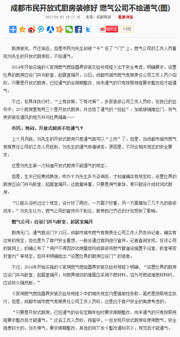 5.問(wèn):之前并不知曉開(kāi)放式廚房不能通氣,現(xiàn)在裝修好了才說(shuō)不能通氣,燃?xì)夤疽膊唤o客戶(hù)一個(gè)緩沖期,說(shuō)不通就不通,非常不人性化。
