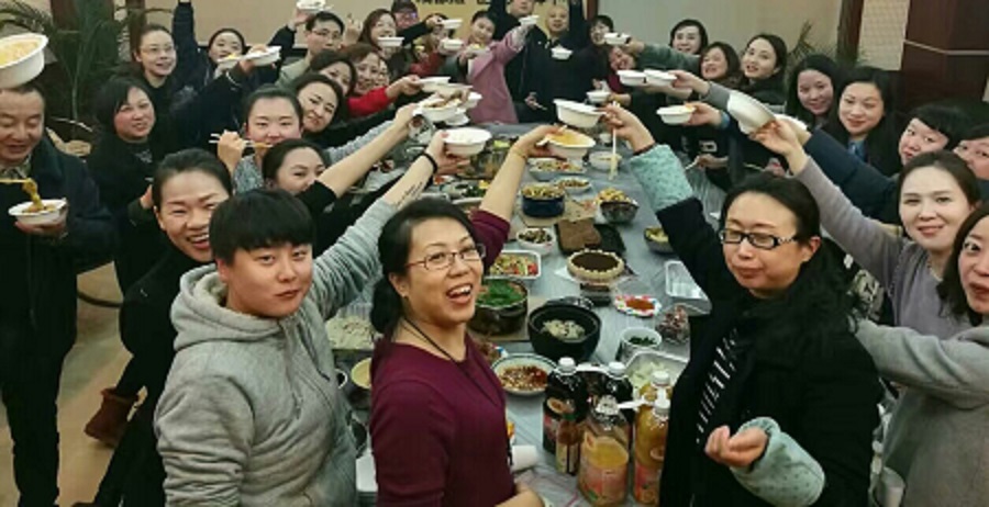 在另一邊,堅守崗位的同事們還在忙碌地接聽客戶來電,受理各類業(yè)務(wù)。當我們把熱騰騰的飯菜送到他們面前時,我看到了他們驚喜的笑容和淚光閃爍的雙眼。吃吧,這就是我們的團年飯;吃吧,這就是我們的團圓夜;吃吧,17年我們要一起成長、一起幸福。